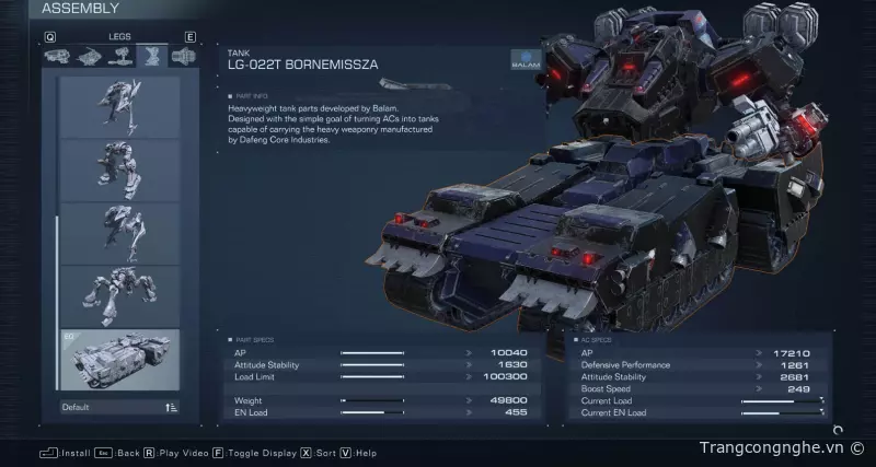Ngược lại, nếu anh em muốn có một mech mạnh mẽ như một chiếc xe tăng chính hiệu, trang bị đầy đủ vũ khí nặng để đối phó với mọi thử thách, anh em hoàn toàn có thể biến mech của mình thành một cỗ xe tăng thực sự. Điều này đồng nghĩa với việc có lượng vũ khí nhiều hơn và mức giáp AP cao hàng vạn, nhưng mech sẽ trở nên chậm chạp và cồng kềnh, khó né đòn.