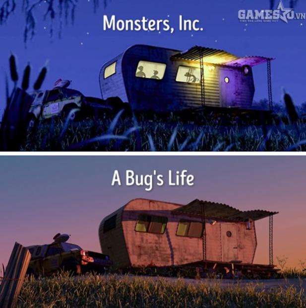 Bằng chứng của gia thuyết du hành này là căn nhà du mục xuất hiện ở cả Monster Inc. và A Bug's Life. Trong Monster Inc., vì quái vật quay về quá khứ khi còn người còn sống nên căn nhà mới hơn. Trong A Bug's Life nhiều năm sau đó, căn nhà đã trở nên hoang tàn, cũ kỹ.