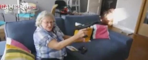 Tuy nhiên, khí thế và kỹ thuật bắn súng của cụ cũng sôi động không kém, sau khi thất vọng với đồng đội, cụ đột nhiên cầm khẩu súng thật lên rồi bắn loạn xạ trong căn phòng mình đang chơi game, những đứa trẻ đứng cạnh bên nhìn bà chơi game thì hốt hoảng ôm đầu chạy trốn, còn cụ thì vẫn lạc quan như tuổi hồi xuân.