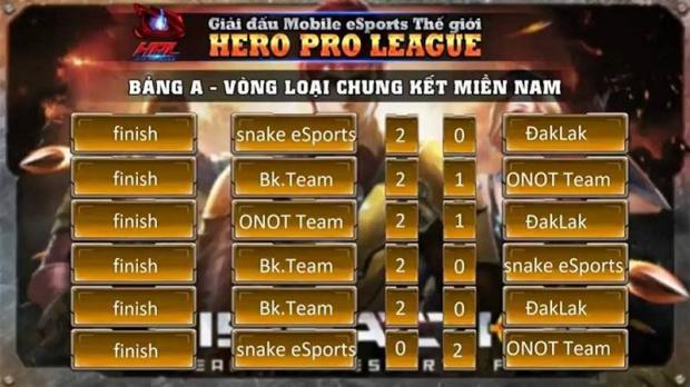 Trong loạt trận đấu tối qua, Bk.Team thể hiện sức mạnh tuyệt đối với 3 chiến thắng liên tiếp, lấy được tấm vé đầu tiên vào bán kết. Trong khi đó, ONOT Team dù để thua chính Bk.Team 1-2 trong trận đấu đầu tiên nhưng bằng việc vượt qua các đối thủ còn lại snake eSports (2-0) và Đaklak (2-1) cũng dành cho mình suất góp mặt tại vòng bán kết.