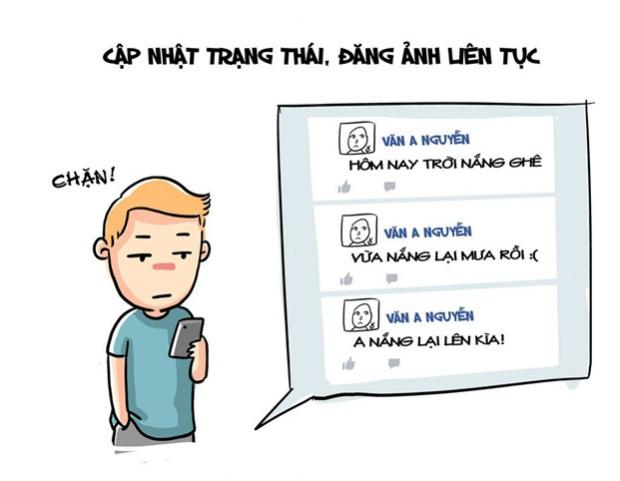 Bạn bè sẽ cảm thấy bị làm phiền trước những người thích cập nhật ảnh, dòng trạng thái theo giờ, tràn lan trên tường Facebook.