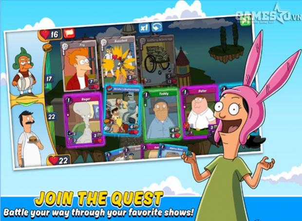 Animation Throwdown: The Quest for Cards là tựa game miễn phí được phát triển dành cho cả Android và iOS, trò chơi mang đến các cuộc đấu bài hấp dẫn dành cho các game thủ đam mê thể loại này. Tuy nhiên khác với các game cùng thể loại khác Animation Throwdown: The Quest for Cards lấy cảm hứng hoàn toàn từ các nhân vật nổi tiếng trong các dòng phim hoạt hình đình đám như Fox Digital. Futurama, American Dad, Family Guy, King of the Hill.