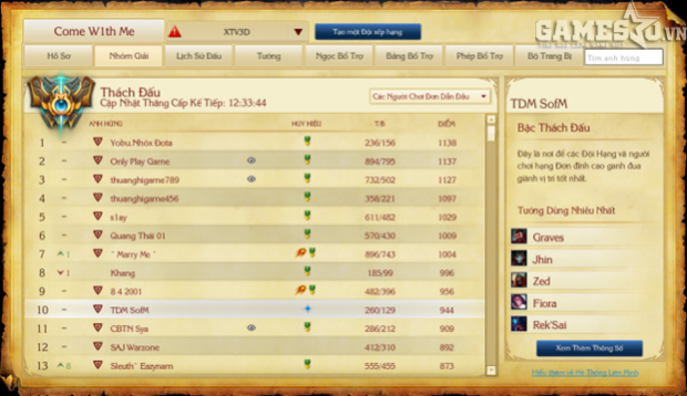 Nhưng chỉ sau 3 ngày quay về Việt Nam, SofM đã đưa nick này trở về top 50 Thách Đấu. Và rồi bất ngờ hơn vào hôm nay 6/10. SofM chính thức cán mốc top 10 và chỉ thua người đứng đầu 194 điểm.