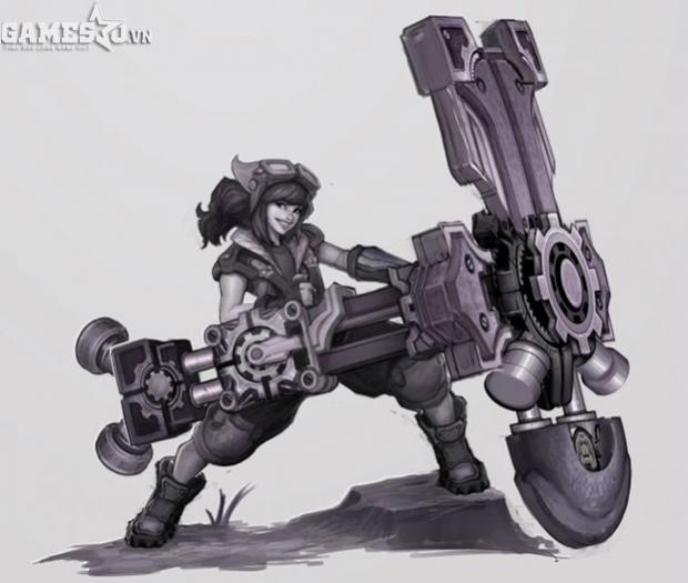 Nhìn qua ảnh nền thì có thể thấy rõ dáng vẻ thể thao, đầy năng động của CeeCee. Cô nàng này là một kỹ sư Hextech, với mục tiêu thiết kế ban đầu của Riot Games là trở thành một vị tướng hỗ trợ. Vũ khí chính của CeeCee chính là chiếc bàn làm việc bằng kim loại được lắp ráp đầy tinh vi.