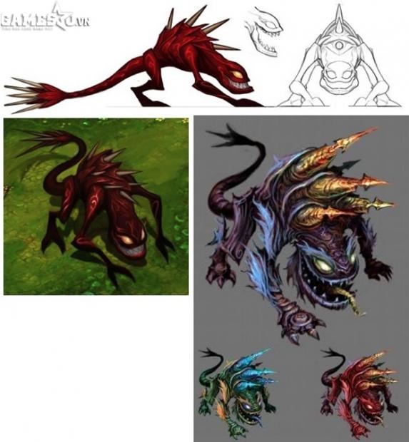Omen là một sinh vật bốn chân có những cây gai nhọn xuất phát từ lưng và đuôi mang dáng vẻ như một sinh vật rất nguy hiểm không phải đến từ thế giới này. Sau này, một số nhân viên Riot Games đã nói rằng đây là vị tướng đã truyền cảm hứng thiết kế Rek’Sai. Tuy nhiên, trong quá trình phát triển kĩ năng thì vị tướng này lại đi ngược lại ý định ban đầu và thậm chí còn gặp khá nhiều lỗi. Vì vậy Riot Games đã phải cho ra mắt Riven để thế chỗ và Omen cũng rơi dần vào quên lãng.