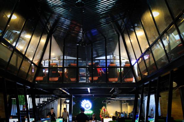 Không gian rộng rãi của quán Net GameHome có thể xem là một điểm nhấn, khi mà các quán Net hiện nay đa phần đều tối ưu diện tích để có thể lắp đặt được nhiều máy tính, thì không gian GameHome lại được thiết kế khá thoáng đãng, thậm chí còn có cả cây xanh.