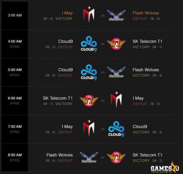 C9 giành quyền chơi ở vòng đấu loại trực tiếp ngay sau khi SKT đánh bại FW ở trận đấu cuối cùng thuộc khuôn khổ Bảng B. Thất bại đã khiến FW chỉ có hệ số 2-4, trong khi C9 lại là 3-3. IMay cũng có hệ số tương tự với FW sau trận thua trước C9 và nghiễm nhiên chiếc vé còn đi tiếp còn lại rơi vào tay của đại diện Bắc Mỹ.