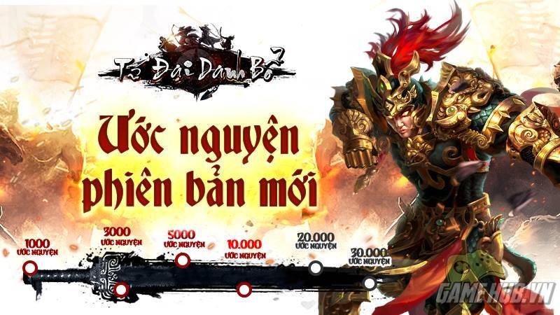 Sự kiện Ước nguyện cùng phiên bản mới có tất cả 6 mốc với số lượng: 1000, 3000, 5000, 10.000, 20.000 và 30.000. Khi đạt các mốc ước nguyện nhất định thì bản update của Tứ Đại Danh Bổ sẽ được mở thêm những tính năng mới đặc biệt, bên cạnh đó, toàn bộ game thủ trên tất cả các server cũng sẽ nhận được quà tặng và các quyền lợi vô cùng hấp dẫn.