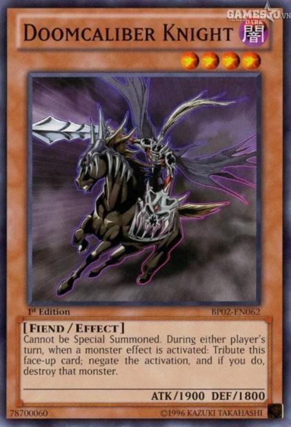 Hơn thế nữa, Doomcaliber việc bỏ ra số tiền trên để sở hữu Doomcaliber Knight cũng là hợp tình hợp lý, vì lá bài này vốn thuộc hàng khủng nhất của dòng bài 4 sao, có 1900 điểm công, 1800 điểm thủ, cùng khả năng hy sinh thân mình để cản lại hiệu ứng đặc biệt của đối thủ, hơn nữa còn “ôm theo” lá bài kích hoạt hiệu ứng đó xuống mộ.