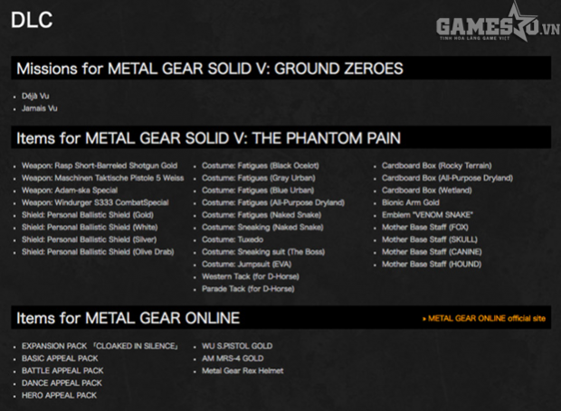 Các nội dung có trong phiên bản Metal Gear Solid V mới.