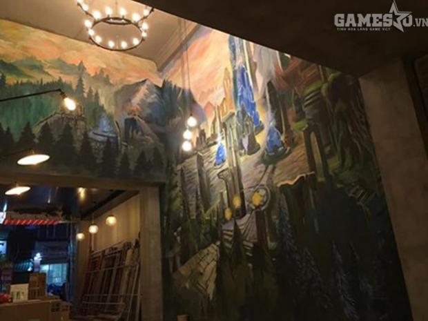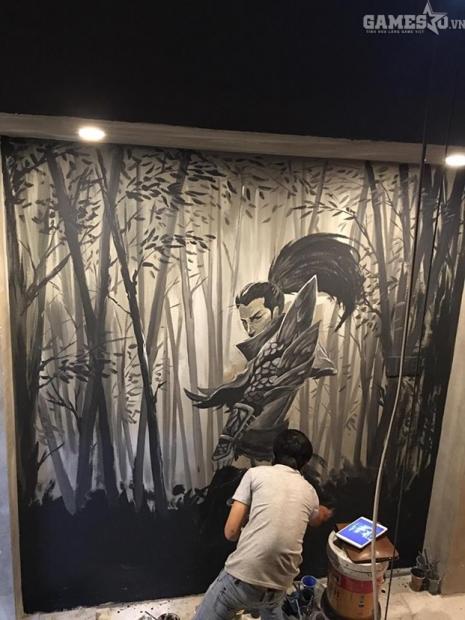 Tính đến thời điểm hiện tại, 'Quán Nét' của QTV đã bước vào quá trình hoàn thiện. Không gian được trang trí bằng những hình vẽ cực chất. Các bạn có thể thấy rõ hình ảnh của Yasuo - vị tướng leo rank yêu thích của QTV. Cùng với đó là các tuyển thủ Liên Minh Huyền Thoại nổi tiếng như Faker hay SofM.