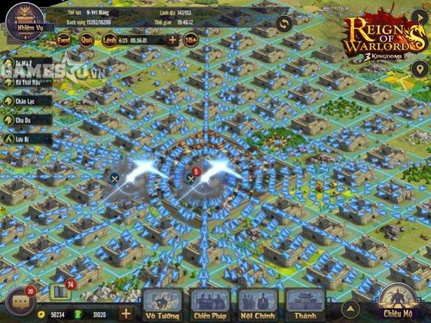 Không chỉ xây thành, an dân, “Trí” của người thành chủ Reign of Warlords cũng thường xuyên có đất dụng võ, nhờ vào tiến trình chọn lựa các mảnh đất đai mà mình sẽ sở hữu. Những kẻ tham lam mở rộng bờ cõi bất chấp tính toán sẽ lập tức thiệt thân, thay vào đó, xem xét binh lực để đoạt các mảnh đất cấp độ cao, tập trung sở hữu những mỏ tài nguyên cần thiết… là bí quyết để bứt phá nhanh của nhiều người chơi thành công.