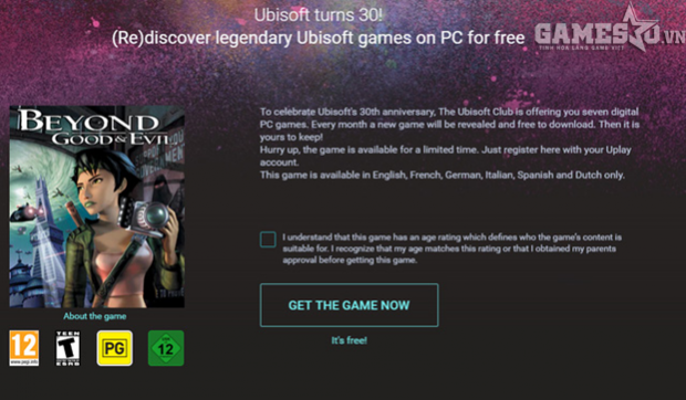 Kể từ tháng 6 đến nay, Ubisoft đã lần lượt tặng game thủ những tựa game miễn phí theo chu kì 1 lần/tháng nhân dịp kỉ niệm 30 năm ngày thành lập. Trong tháng 9 vừa qua, chúng ta đã có cơ hội tham gia vào đấu trường mạng hấp dẫn của tựa game đua xe thế giới mở The Crew thì tới tháng 10 này, hãng game Pháp lại quay lại với một cái tên cổ điển hơn, đó là Beyond Good & Evil.