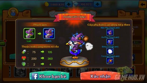 Tiến giới nhân vật sẽ mở khóa kỹ năng đặc biệt và tang các chỉ số Công, Máu, Thủ