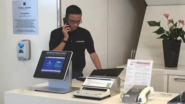 Nhân viên Samsung tại một điểm đổi Galaxy Note 7 ở một sân bay trên nước Mỹ