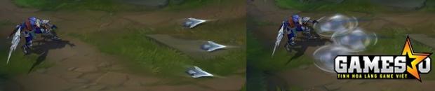 - Giờ cho Akali hiệu ứng đặc biệt ở hai đòn đánh kế tiếp (giá trị phụ thuộc vào cấp độ) rồi mới vào trạng thái hồi chiêu.