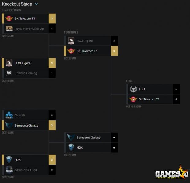 Nhà ĐKVĐ SKT T1 vẫn còn cơ hội bảo vệ thành công ngôi vương. Mặc dù bị dẫn trước 1-2, nhưng SKT vẫn quay trở lại mạnh mẽ và giành liền hai ván thắng liên tiếp để đánh bại ROX trong loạt Bo5 để thẳng tiến vào trận Chung kết. Đây là trận đấu đầu tiên kéo dài năm ván đấu tại CKTG sau Bán kết Mùa 4 giữa Star Horn Royal Club vs OMG.