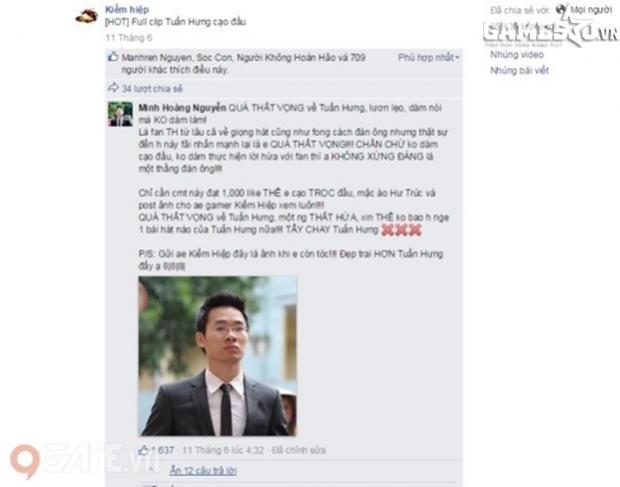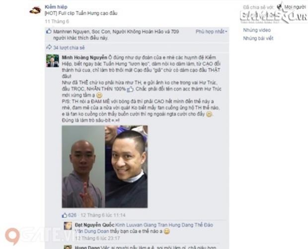 Được biết vào thời điểm đó là sau khi Tuấn Hưng tuyên bố sẽ cạo trọc mái tóc nếu U23 Việt Nam thua U23 Thái Lan. Rốt cục, U23 Việt Nam thua và Tuấn Hưng “hứa cạo trọc mà chỉ húi cua”. Đồng thời Minh Nguyễn, khi đó còn là game thủ của game Kiếm Hiệp, đã tuyên bố “Nếu cmt này đạt 1000 like sẽ cạo trọc nhẵn tín và mặc áo Hư Trúc, post video cho cộng đồng mạng xem.”