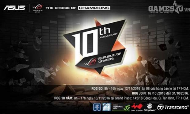 - ROG 10 NĂM: 8h - 17h ngày 13/11/2016 tại Grand Place: 142/18 Cộng Hòa, Q. Tân Bình, TP. Hồ Chí Minh.