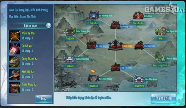 Vượt qua được khu dã ngoại, đoạt được Long Trụ, bang hội mới có thể tiếp cận 13 khu lãnh địa. Những địa danh Kiến Tính Phong, Điểm Thương Sơn, Bờ Hồ Động Đình, Ba Lăng Huyện, Vĩ Lạc Trấn… sẽ là những thành thị cần phải vượt qua trước khi chạm được cửa ngõ Tương Dương. Chiếm giữ lãnh địa, vừa cố thủ bảo vệ đất, vừa tấn công thành thị, chỉ những bang hội nào đồng sức đồng lòng, lắng nghe lời hiệu triệu của thủ lĩnh mới vượt qua được “lớp lớp quân thù” mà xưng bá thành Tương Dương.