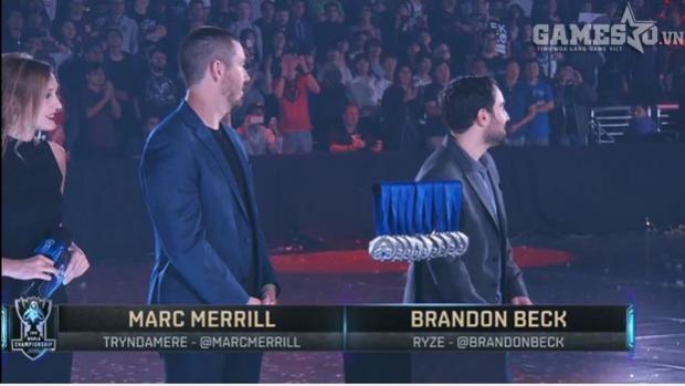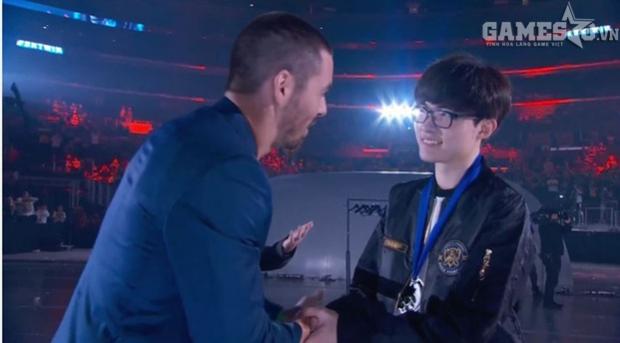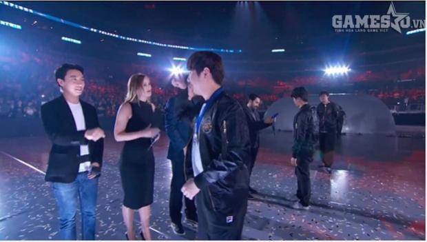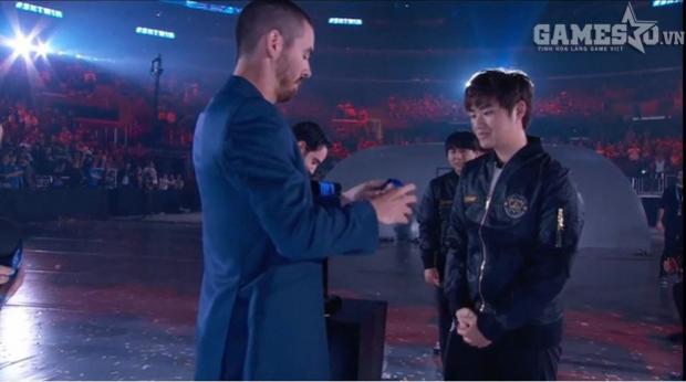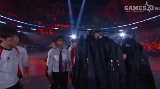 Và cuối cùng, phần đặc sắc nhất chính là màn trao thưởng và huân chương cho nhà vô địch năm nay. Cả đội SKT T1 bao gồm cả tuyển thủ và ban huấn luyện đã được Riot thiết kế riêng cho một chiếc áo khoác dành cho nhà vô địch thế giới. Đây là vinh dự mà chưa đội tuyển nào trong lịch sử được nhận. Hãy cùng chúng tôi ngắm nhìn lại khoảnh khắc tuyệt vời này nhé.