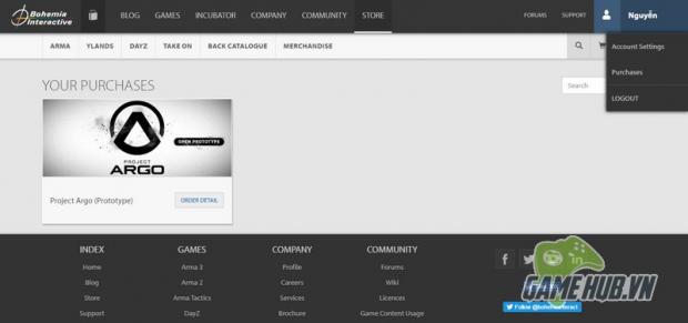 Những điều bạn cần làm là truy cập vào địa chỉ: https://store.bistudio.com/products/project-argo. Yêu cầu đầu tiên là bạn phải lập một tài khoản trên website, có thể qua email thông thường hoặc nhanh hơn qua việc đăng ký với tài khoản Facebook, Twitter hoặc Google+. Sau khi đăng ký thành công bạn sẽ thấy góc trên cùng tay phải có lựa chọn nhận miễn phí Project Argo. Bạn chỉ cần click vào đây và liên kết về tài khoản Steam trên PC của mình, sau đó kiểm tra phần 'Purchases' ở mục Profile cá nhân. Tiếp tục ấn vào 'Redeem' để chính thức sở hữu Project Argo.
