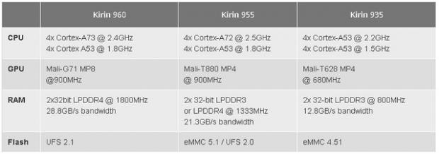 Về cơ bản, Kirin 960 là một bộ vi xử lý di động có 8 lõi dựa trên thiết kế big.LITTLE quen thuộc. Nó bao gồm 4 lõi Cortex A73 2,4GHz có hiệu năng cao và 4 lõi Cortex A53 1,8GHz hiệu năng thấp. Được phát triển trên nền tảng 16nm của ARM.
