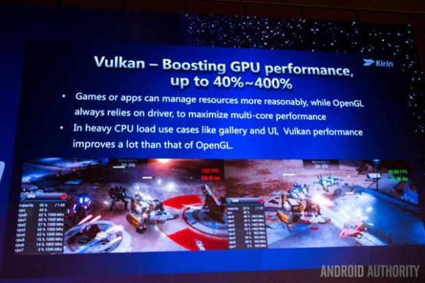 Huawei khá tự hào khi Kirin 960 là bộ vi xử lý di động đầu tiên hỗ trợ đầy đủ các API Vulkan. Đây là API đồ họa mới giúp đem lại hiệu năng đồ họa tối ưu so với OpenGL, nhờ khả năng tận dụng sức mạnh đa lõi của chip xử lý.