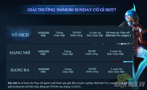 Giải thưởng hấp dẫn dành cho các chiến đội xuất sắc nhất tại các oflfine 360mobi Sunday