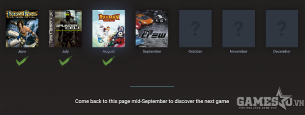 Các tựa game đã được Give Away bao gồm: Prince of Perisa, Splinter Cell, Rayman Origins, The Crew, Beyond Good And Evil và trong tháng 11 này sẽ là Far Cry 3: Blood Dragon. Chương trình sẽ được thực hiện vào 09/11, game thủ cần chú ý điều này.
