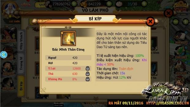 Hoa Sơn Luận Kiếm 3D, Game Kim Dung của người Việt sẽ chính thức mở cửa vào 10h sáng ngày Thứ Tư 9/11 tới đây. Hiện tại, sản phẩm đã sẵn sàng trên App Store (iOS) và Google Play (Android), cho phép người chơi tải về miễn phí từ ngày 7/11 tại địa chỉ http://hoason.choi.vn