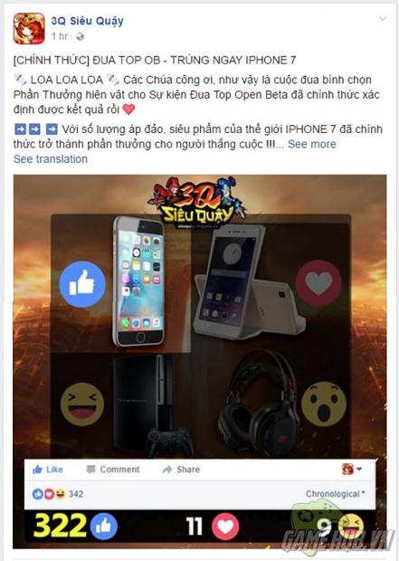 Mới đây, trên Fanpage chính thức của 3Q Siêu Quậy vừa hé lộ một thông tin cực HOT. Đó là game thủ chiến thắng Sự kiện Đua top Open Beta sẽ được nhận ngay phần thưởng hiện vật cực giá trị: Siêu phẩm iPhone 7 – Smartphone mới ra mắt đang làm mưa làm gió thị trường công nghệ thời gian vừa qua!