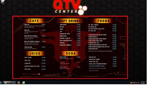 Để có được điều này, có lẽ phải kể đến giá tiền phòng máy tại QTV Center. Chỉ với 10 nghìn đồng/tiếng cho dàn máy thường, rẻ hơn rất nhiều so với những dự đoán trước kia của fan hâm mộ. Đồ ăn và uống tại quán giá cũng vô cùng hợp lý. Mỳ xào chỉ giao động từ 15 nghìn đến 27 nghìn/ đĩa, cơm đồng giá 32 nghìn/suất ăn, đồ uống từ 10 nghìn đến 55 nghìn các loại cho game thủ lựa chọn.
