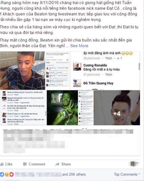 Cách đây vài giờ đồng hồ, bạn bè, người thân của Đạt truyền tai nhau thông tin anh chàng này qua đời vì tai nạn giao thông kèm theo đó là rất, rất nhiều bình luận tiếc thương. Bàng hoàng hơn là cách đó ít giờ đồng hồ, Đạt vẫn còn đăng hình mình bị tai nạn, chảy máu nhiều nhưng cậu vẫn lạc quan: 'Vẫn cứ là ok'.