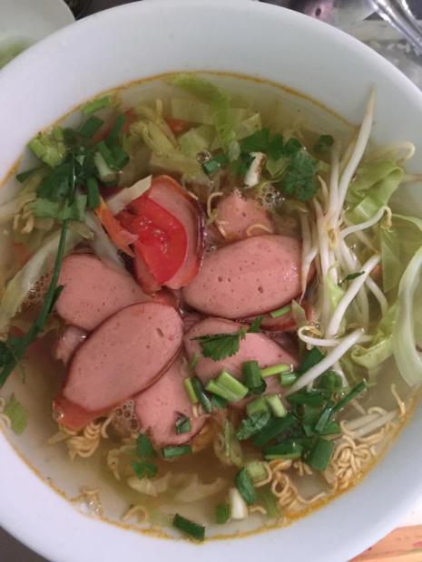5. Mỳ tôm trứng, xúc xích, rau, mọc...