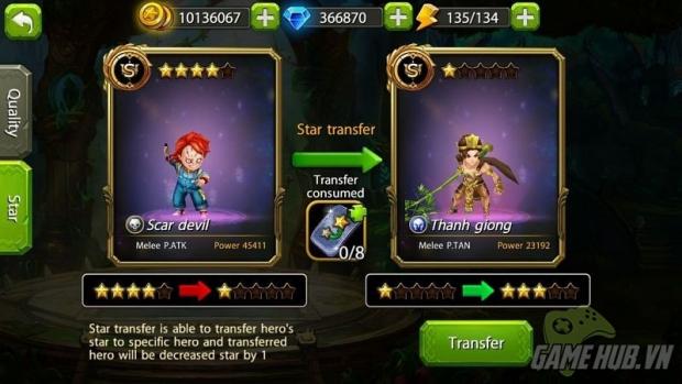 Age of Avatars vốn sở hữu hệ thống nhân vật anh hùng vô cùng đa dạng và phong phú, không chỉ vậy AOA còn cho ra mắt các anh hùng mới theo từng phiên bản cập nhật với hy vọng thỏa mãn được đam mê sưu tập đủ bộ anh hùng của người chơi. Nhưng chỉ khi thu thập đủ số mảnh ghép, người chơi mới tăng sao được cho nhân vật anh hùng đó, mà với lượng anh hùng phong phú như vậy thì thực sự sẽ phải tốn khá nhiều thời gian và công sức để huấn luyện tất cả các nhân vật. Triệu hồi anh hùng đã khó, tăng sao còn khó hơn. Thấu hiểu điều này, AOA đã cập nhật tính năng Star Transfer (Di chuyển sao), giúp người chơi tăng sao nhân vật một cách không thể dễ dàng hơn!