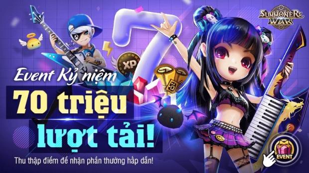 Summoners War sẽ tổ chức một Sự Kiện đặc biệt Kỷ niệm đạt mốc 70 triệu lượt tải như một lời cảm ơn chân thành đến cộng đồng game thủ trên toàn thế giới đã ủng hộ tựa game suốt thời gian qua. Người chơi có cơ hội nhận được nhiều phần thưởng hấp dẫn dựa trên số điểm tích lũy trong game khi sử dụng Năng lượng và Quái thú của Bạn bè từ ngày 07 đến hết ngày 20/11.