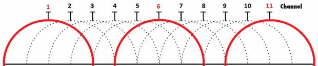 2,4GHz và 5GHz là hai băng tần mà Wi-Fi hiện nay đang sử dụng để hoạt động. Trong mỗi băng tần như vậy lại được chia thành các đoạn 20MHz nằm liên tiếp và có phần chồng lên nhau, gọi là từng channel. Mặc định, các nhà sản xuất router thường cài channel cho thiết bị của họ ở channel 1 hay 3, vậy nên ở hai channel này lúc nào cũng đông 'dân cư' nhất. Nếu chúng ta đổi sang các channel khác thì sẽ ít bị xung đột với những hộ gia đình khác. Nhìn vào hình bên dưới, bạn sẽ biết được channel 1, 6 và 11 là các channel không bị trùng đè lên nhau ở bất kì đoạn này, vậy nên người ta hay khuyên là hãy set channel cho router về 1, 6 và 11.