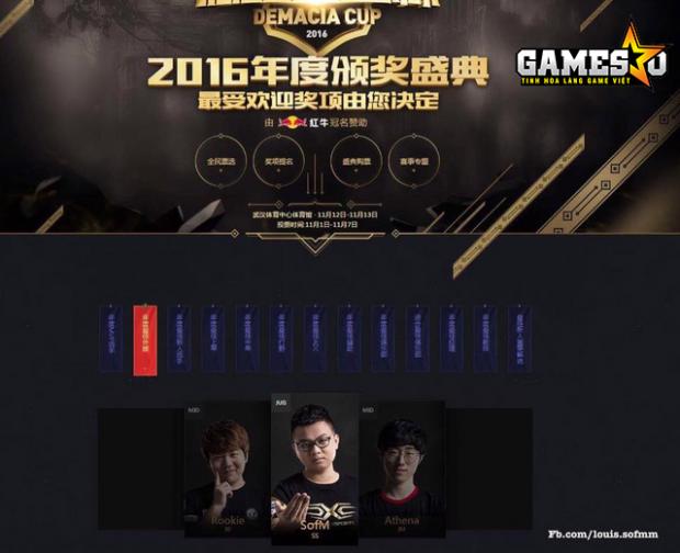 Ngoài ra, anh cũng với Snake còn được điền tên và có cơ hội giành giải thưởng Đội tuyển xuất sắc nhất năm. Nhưng để có được ngần ấy giải thưởng vinh dự trong mùa đầu tiên “Tàu tiến”, SofM sẽ phải cùng Snake vô địch Demacia Cup 2016 mà trước tiên phải đánh bại IMay ở vòng Bán kết.