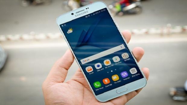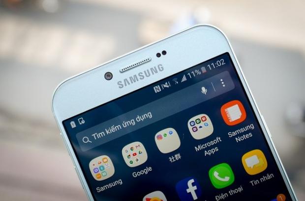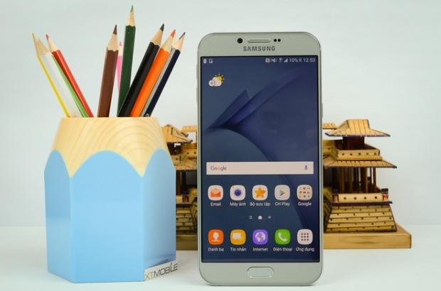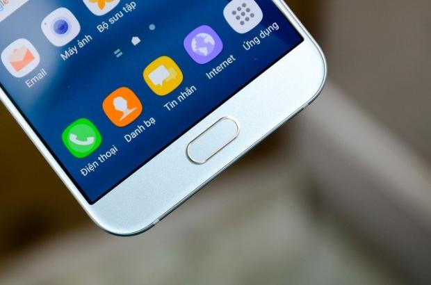 Thiết kế mặt trước của Galaxy A8 (2016) giống hệt với Galaxy S6. Bên dưới màn hình là cảm biến vân tay, tốc độ nhận diện nhanh như những model cao cấp của Samsung.
