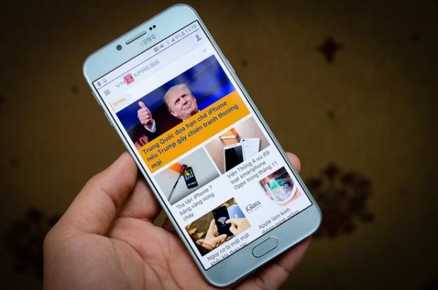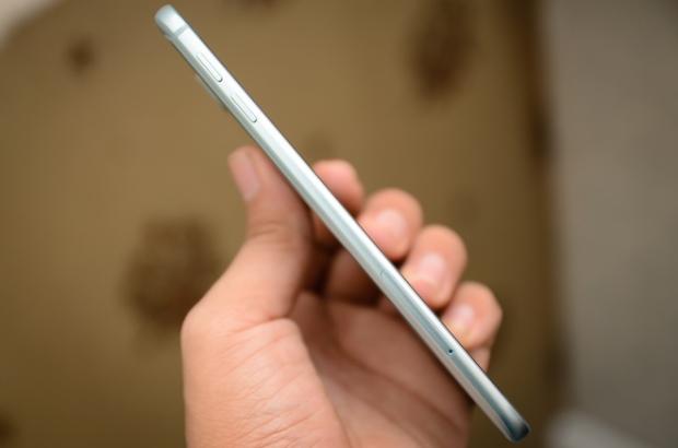 Máy mỏng 7,2 mm, nhưng khá nặng với trọng lượng 182 gram. So với iPhone 7 Plus hay Galaxy S7 edge có màn hình lớn tương đương, mẫu Android tầm trung đời mới của Samsung cho cảm giác cầm chắc tay và đỡ trơn hơn.