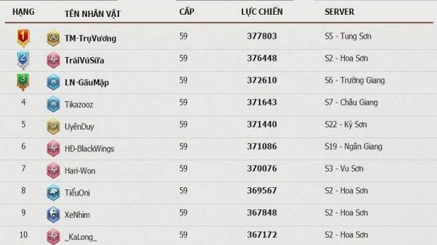 Đến nay Võ Lâm Truyền Kỳ Mobile lại một lần nữa xuất hiện cao nhân. Sau khi quyết định dồn lực đầu tư để chiếm Tương Dương ở sever 5 thì một đại sư Thiếu Lâm TM - Trụ Vương đã bất ngờ thẳng tiến đến vị trí TOP 1 lực chiến toàn sever. Chỉ trong một đêm, game thủ này đã đẩy TráiVúSữa của sever 2 xuống hạng nhì.
