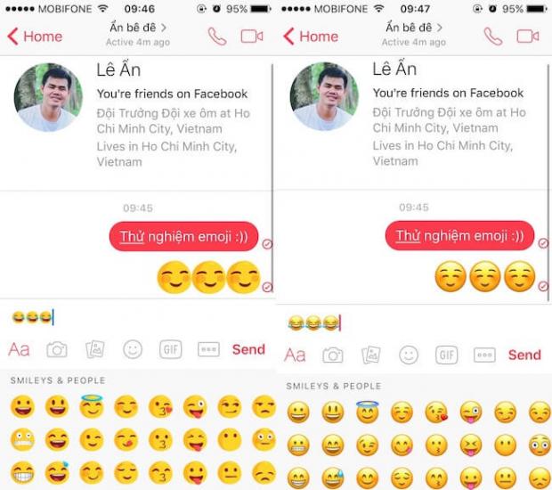 Biểu tượng cảm xúc mặc định trên Messenger (trái) và iOS (phải)
