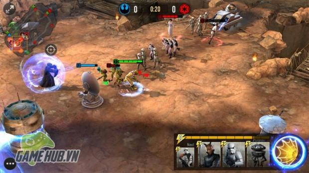 Điểm dễ nhận ra nhất trong phong cách MOBA của Star War: Force Arena là lối chơi xoáy sâu vào PvP. Tại đây, bằng việc lựa chọn giữa hai phe 'Nổi Dậy' hoặc 'Đế Chế', game thủ sẽ hòa mình vào các trận chiến sống còn diễn ra theo thời gian thực. Với bản đồ chia thành 'lane' với hệ thống trụ phòng thủ bày bố khắp nơi, Star Wars: Force Arena quả thực rất muốn hiện chất MOBA truyền thống trên di động.