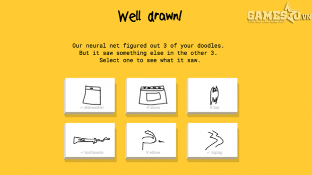 Tác phẩm cuối cùng sau đó sẽ được đánh giá bởi trí thông minh nhân tạo mà Google đang phát triển. Nếu như hệ thống này có thể nhận ra bạn đang vẽ cái gì trong cả 6/6 trường hợp thì xin chúc mừng, bạn có thể tự hào là mình có hoa tay đấy!