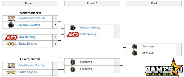 Như vậy, iG sẽ gặp LGD ở Nhánh Thắng diễn ra vào lúc 17g30 ngày mai (19/11). Trong khi trước đó bốn giờ đồng hồ (13g30), hai đội Snake và RNG sẽ có trận đấu sinh tử ở Nhánh Thua.
