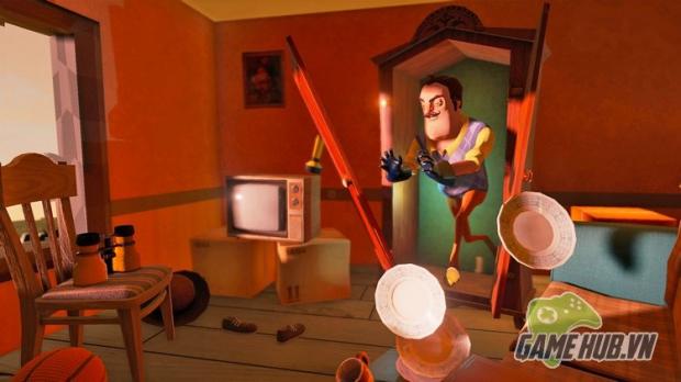 Như đã nói, nếu chỉ nhìn vào hình ảnh để đánh giá Hello Neighbor thì bạn đã bị rơi vào cạm bẫy mà tựa game giăng sẵn. Bất chấp vẻ ngoài đầy màu sắc và dễ gần, bên trong Hello Neighbor là một trải nghiệm đáng sợ, kịch tính và căng thẳng hàng nhất. Điều khiển nhân vật chính dưới góc nhìn thứ nhất, game thủ phải dùng các mánh khác nhau để đánh lạc hướng và tránh tầm mắt của gã hàng xóm nham hiểm. Ví như nghịch chuông cửa trước rồi vòng ra cửa sau, lấy gạch ném kính hay luồn lách qua gara ô tô, tất cả đều hướng tới mục đích duy nhất là khám phá bí mật đang chôn giấu dưới tầng hầm.