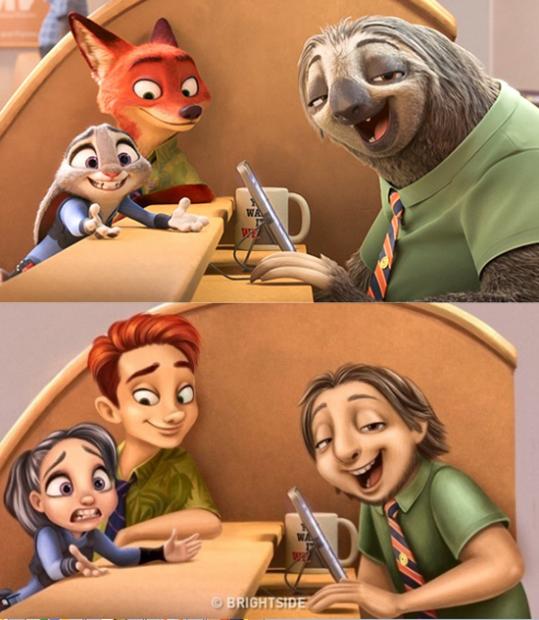 Bộ 3 lắm fan Judy, Nick và Flash (Zootopia) đều có ngoại hình 'không đến nỗi nào' khi biến thành người. Đặc biệt Flash trông có vẻ nhanh nhẹn hơn khi thay thế vóc dáng đồ sộ.