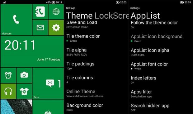 Launcher 8 sẽ đem lại cho thiết bị Android một màn hình chủ theo phong cách Windows Phone 8 với các ô Live Tile. Giống như trên điện thoại Windows Phone, thao tác vuốt màn hình sang bên trái cũng sẽ làm xuất hiện tất cả các ứng dụng. Launcher 8 hoạt động khá mượt.