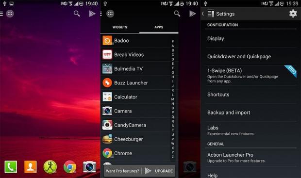 Action Launcher là một launcher rất dễ sử dụng và hoạt động nhanh. Action Launcher thiếu ngăn kéo ứng dụng thông thường. Thao tác vuốt màn hình chủ sang bên phải sẽ đưa bạn tới một danh sách tất cả các ứng dụng được sắp xếp theo thứ tự bảng chữ cái. Thao tác vuốt sang bên trái sẽ đưa bạn tới “QuickPage”, tại đây bạn có thể truy cập Google Search và một số ứng dụng được sử dụng gần đây. Action Launcher là launcher cực kỳ nhẹ, hiếm khi bị chậm hay trục trặc. Tuy nhiên, đa số các tính năng tùy biến chỉ có ở phiên bản mất phí Action Launcher Pro.